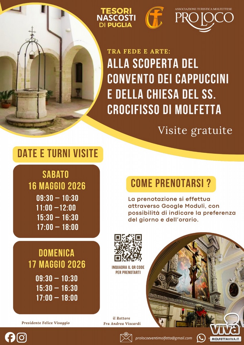 L'associazione Pro Loco Molfetta, in collaborazione con il rettore fra Andrea Viscardi, propone, nell'Anno Giubilare Francescano. "Tra Arte e Fede" una due giorni dedicata alla scoperta della Chiesa del SS.mo Crocifisso e dell'annesso convento dei Frati Minori Cappuccini di Molfetta.