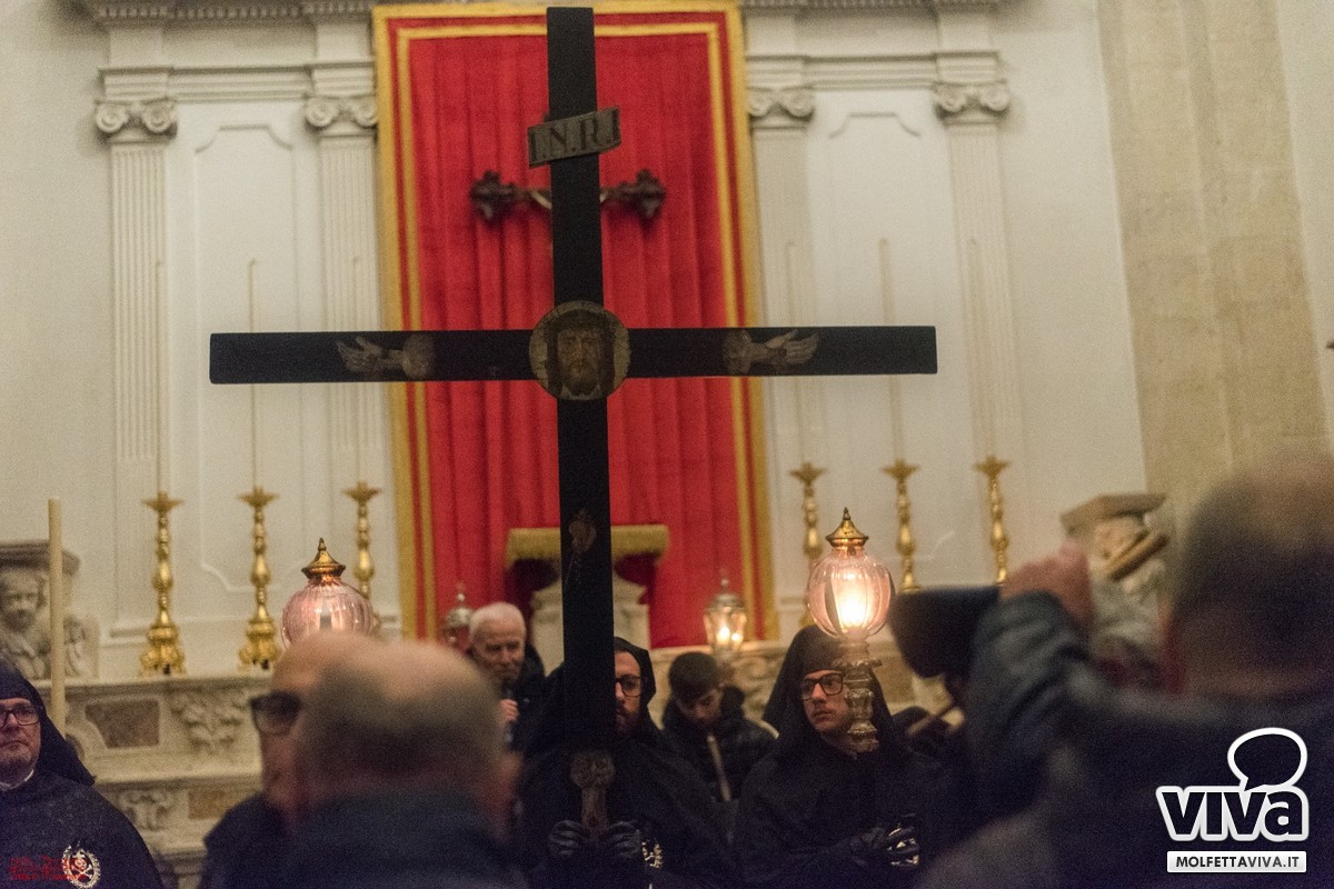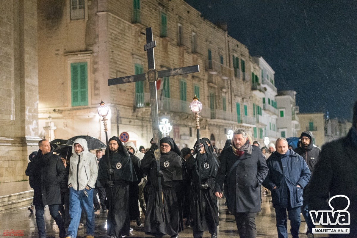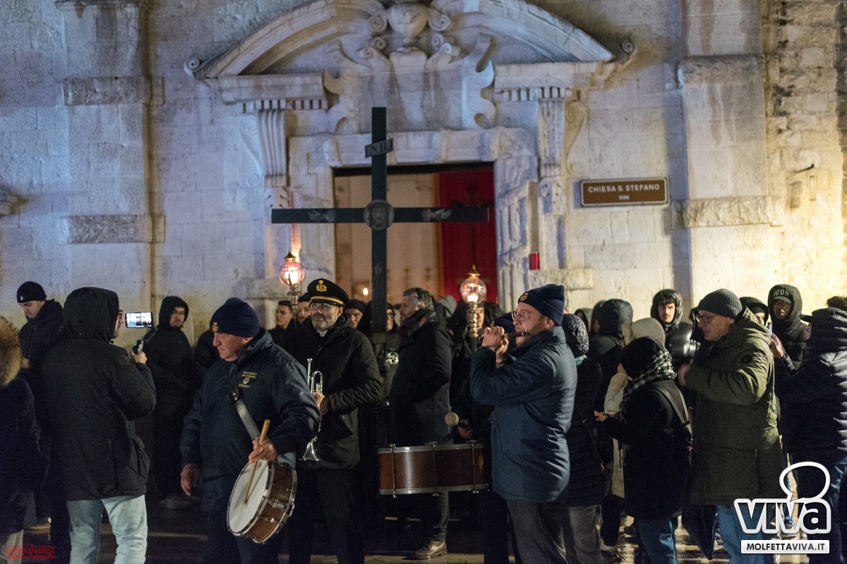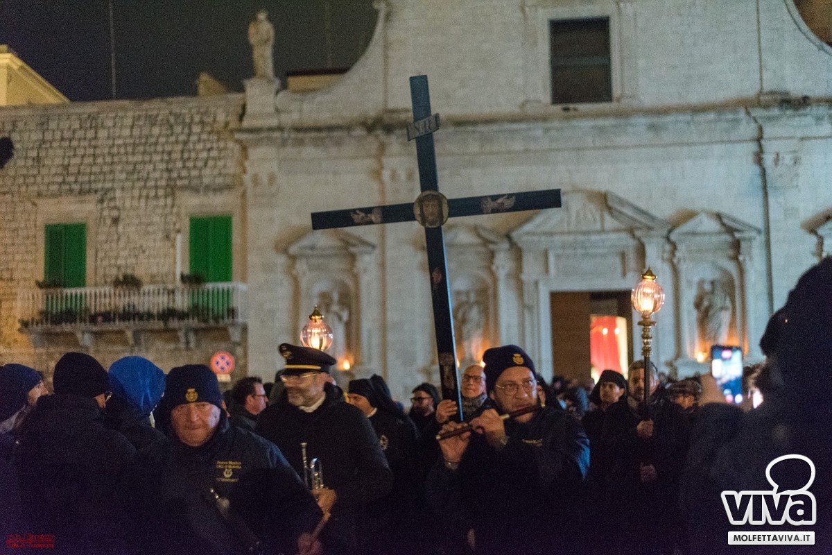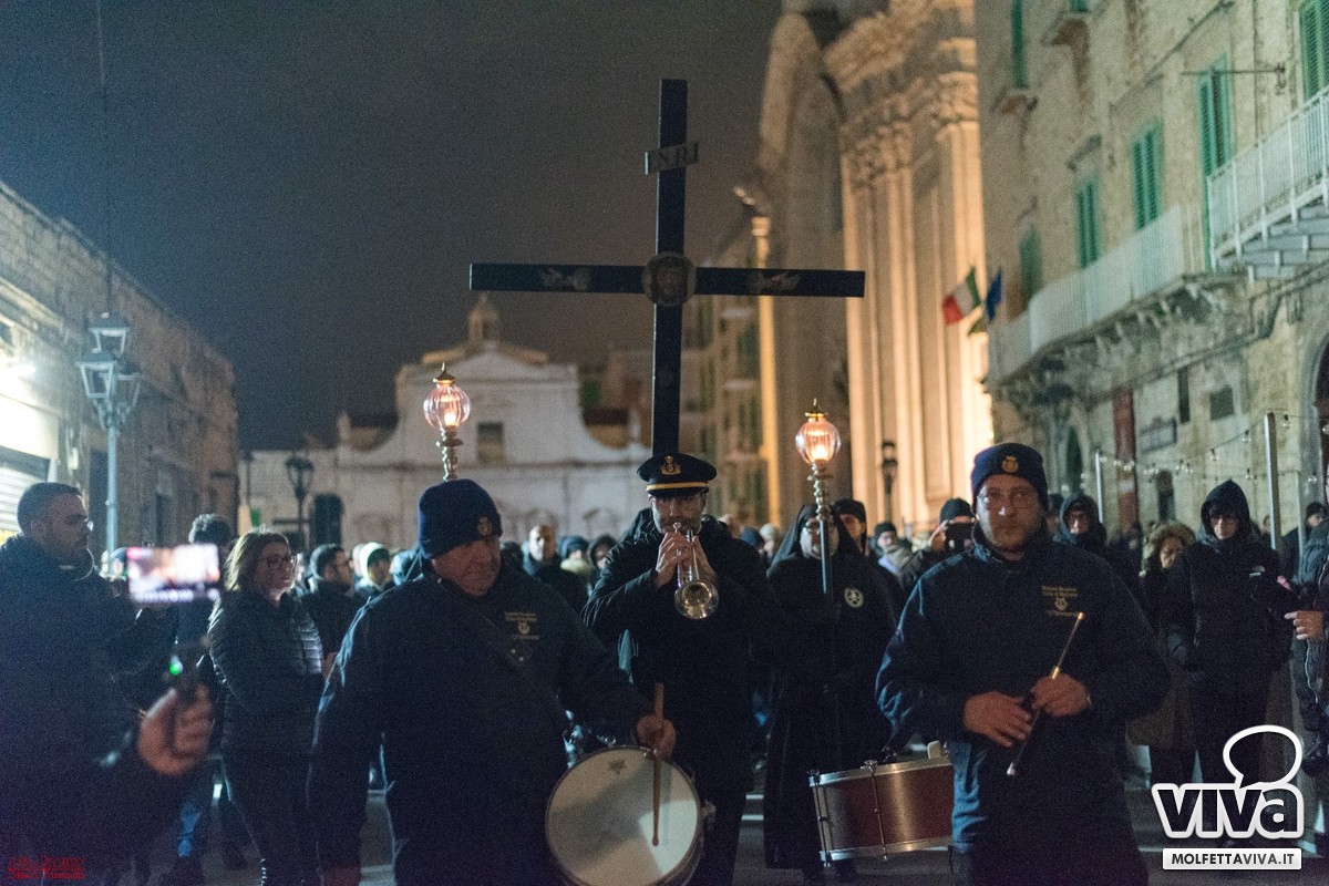 È seguito lo squillo di tromba, tratto da una celebre marcia funebre molfettese, che ha dato avvio alla processione. Un momento di profonda pietà popolare, espressione di una religiosità che profuma di popolo e che continua a rinnovarsi, anno dopo anno.