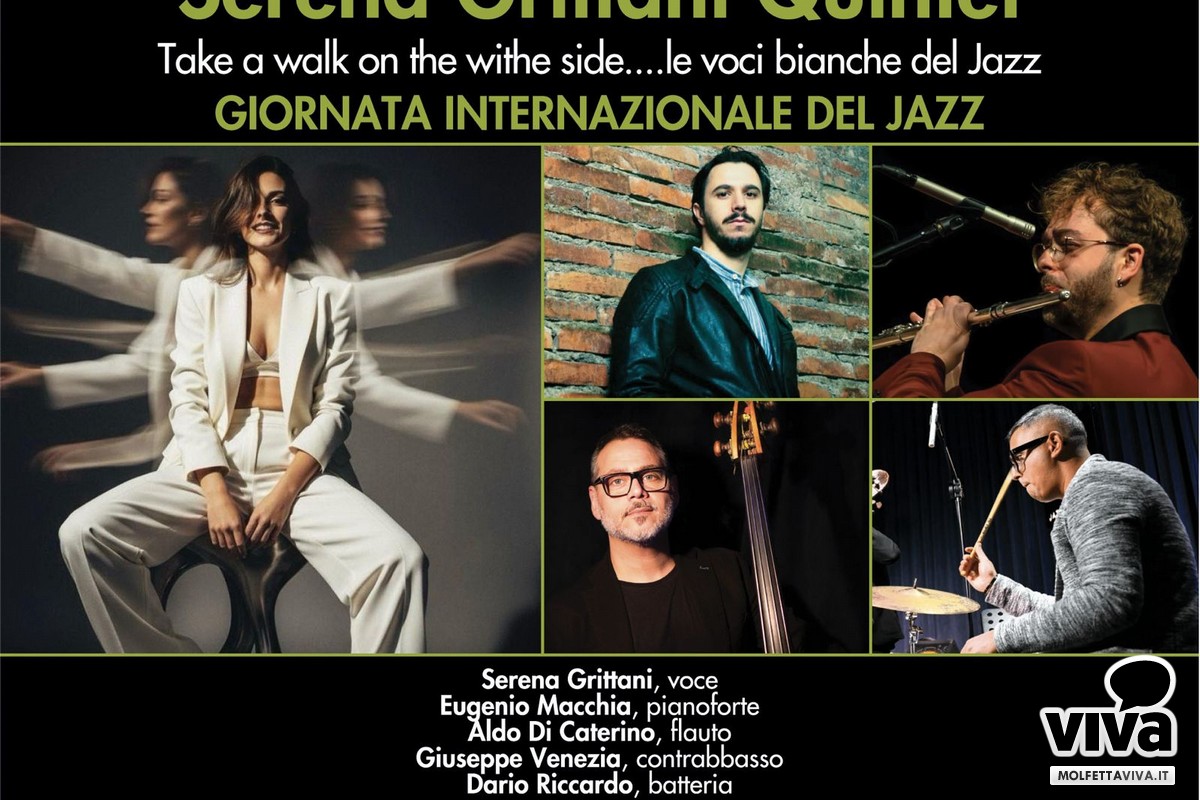 In occasione della Giornata Internazionale del Jazz, l'Associazione Note di Puglia presenta Take A Walk on The White Side – Le voci bianche del jazz, concerto in programma giovedì 30 aprile alle ore 20:30 presso l'Auditorium Madonna della Rosa.