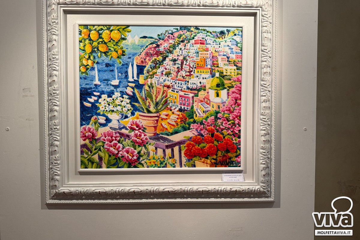In bella mostra tra le tante, le opere dedicate a Santorini, a Positano, a Portofino, a Capri, a Venezia e al suo caro Lago di Garda. La maestosità pittorica e stilistica è tangibile: a noi appassionati dell'arte di Faccincani ci cattura da sempre e il pubblico giunto a Molfetta anche dalle città limitrofe ha espresso al Maestro quello che di positivo emerge dalle sue opere. In tanti hanno scattato foto con l'artista e si son fatti autografare il nuovo catalogo che in copertina riporta l'omaggio pittorico che Faccincani ha rivolto alla città di Molfetta "Intorno a Molfetta Mille Sfumature di Blu", opera olio su tela cm 70x100. Prima del momento inaugurale abbiamo scambiato due battute con il M° Faccincani per rafforzare con lui il principio della bellezza della sua arte pittorica fatta di luce, di colore e di positività. Ecco cosa ci ha detto.