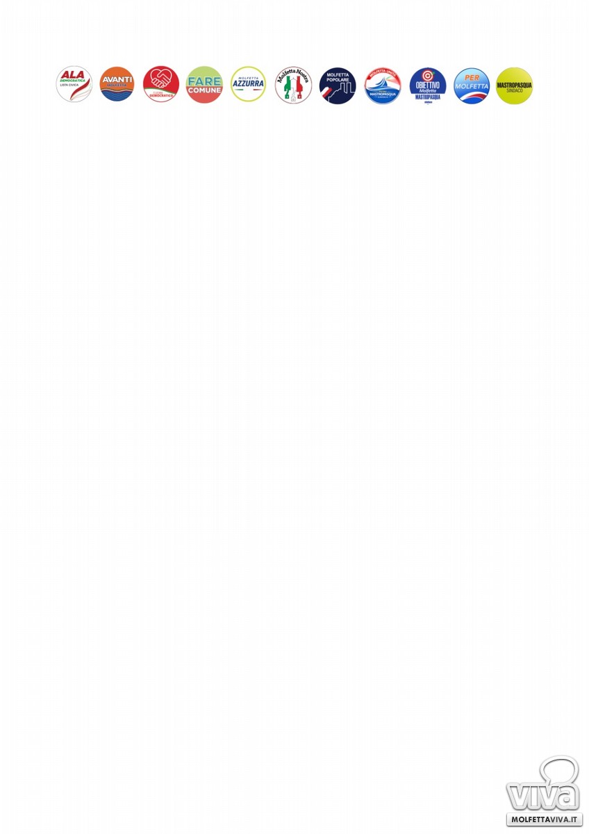 Le 11 liste che compongono questa alleanza, con oltre 260 candidati, non sono un cartello elettorale formatosi per occupare spazi. Sono la dimostrazione che esiste a Molfetta un'area larga, viva, radicata, capace di tenere insieme esperienza e forze nuove, competenze amministrative e partecipazione civica. È questo che rende la proposta di Pietro Mastropasqua diversa e più credibile: non la somma delle sigle, ma la qualità del rinnovamento che quelle liste esprimono.