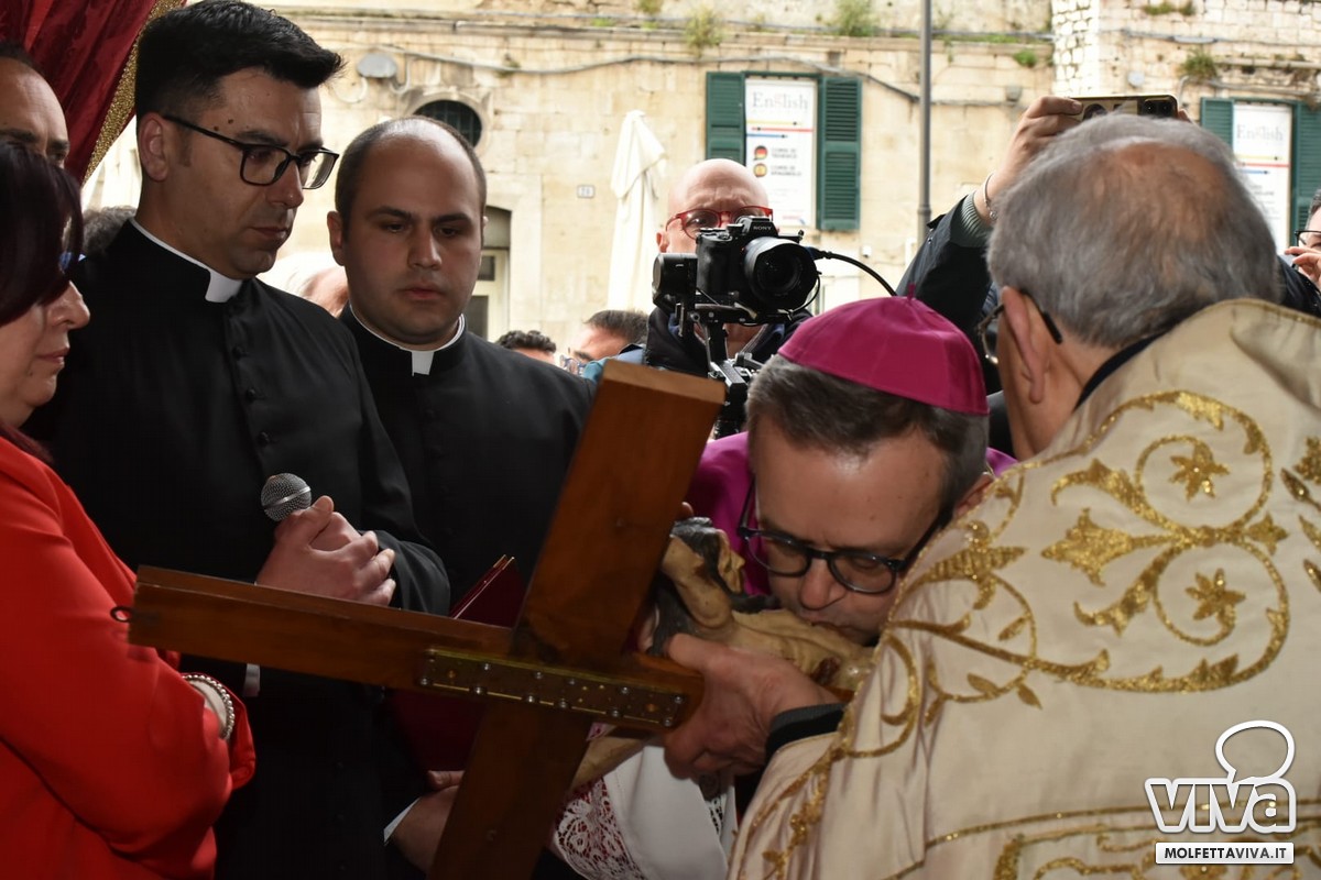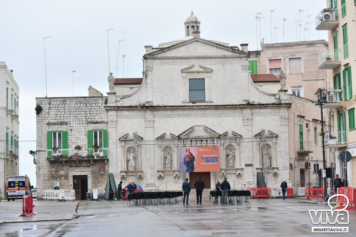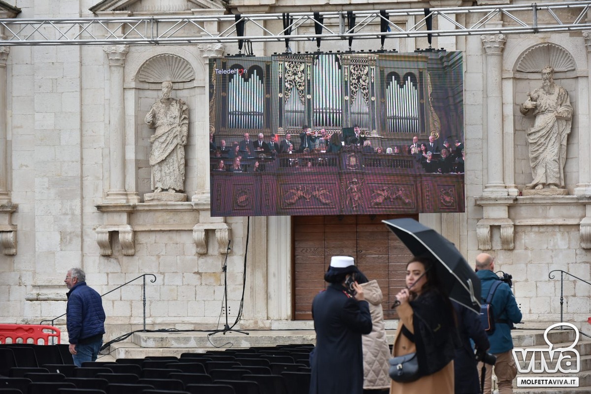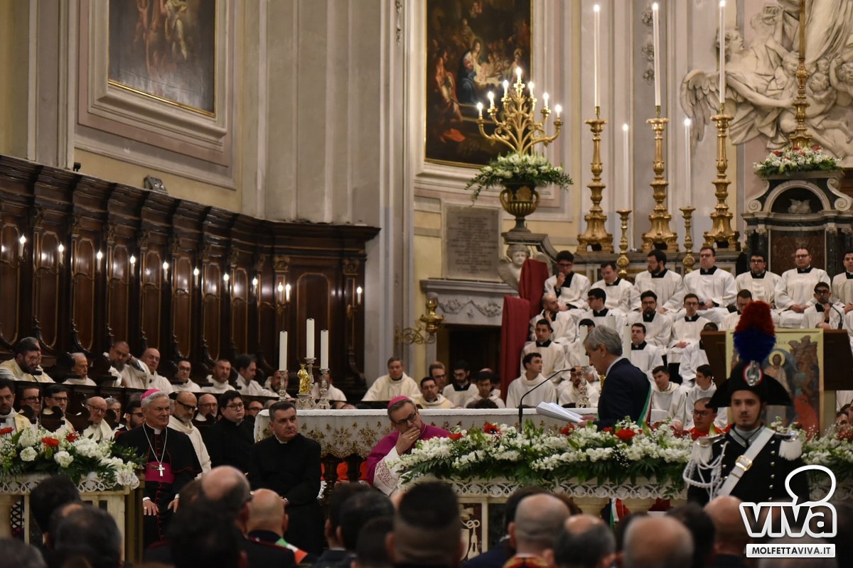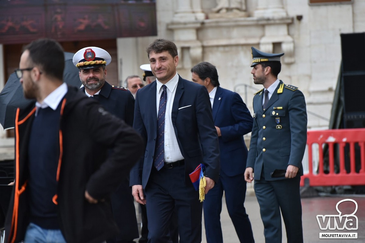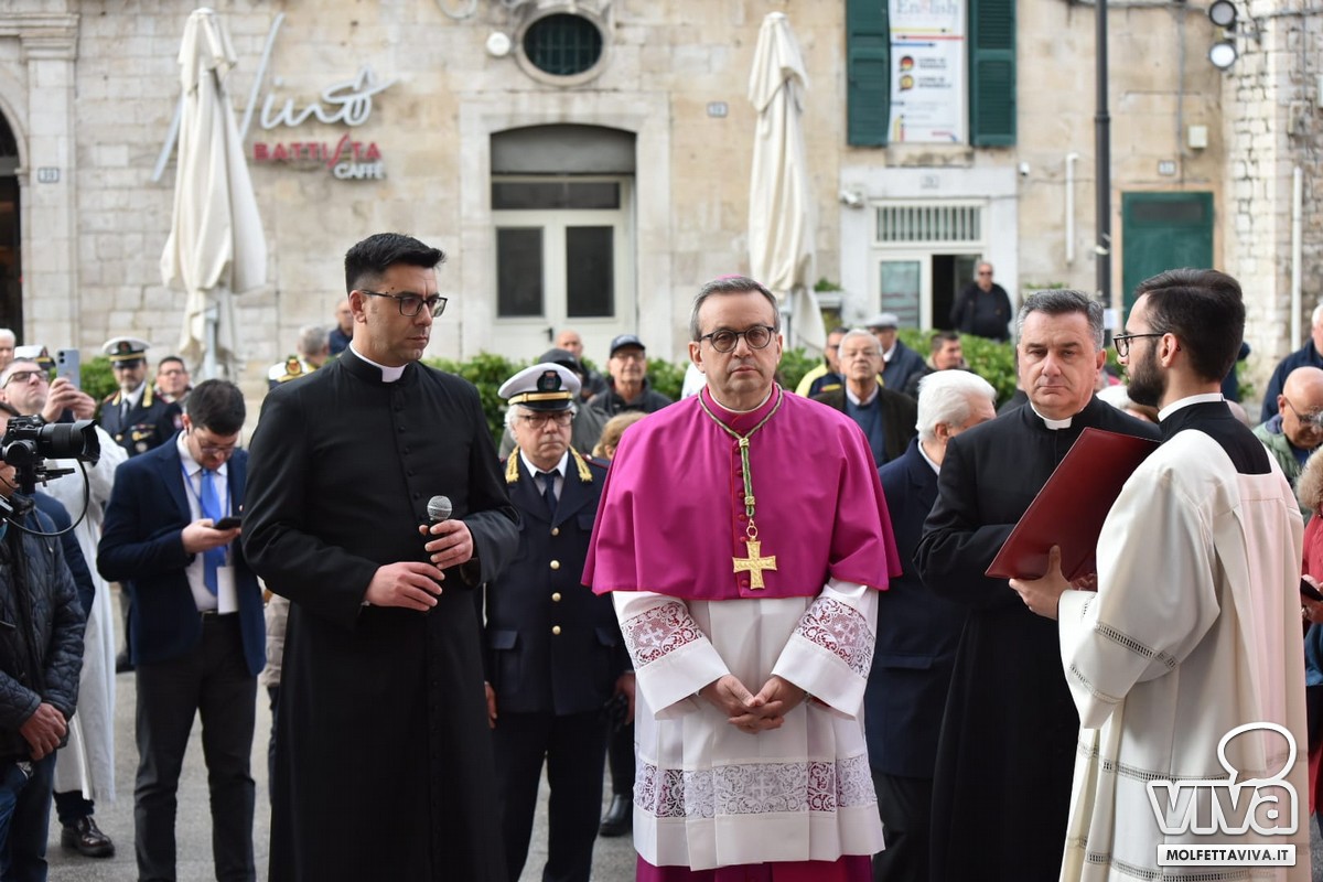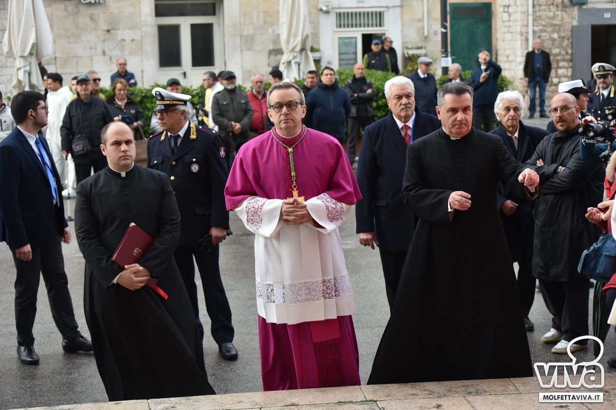 Il pomeriggio ha avuto il suo prologo nel dialogo con le autorità civili e militari nella Cattedrale di Molfetta. Mons. Basile ha esordito manifestando il desiderio di conoscere la sua nuova terra con empatia: «Il mio sguardo su questa terra desidera essere contemplativo, capace di scorgere quel desiderio di bene, verità e giustizia che risiede nel cuore di ognuno». Un passaggio che ha segnato immediatamente la cifra del suo mandato: non "fabbricare" una presenza, ma svelare Dio laddove Egli già abita.