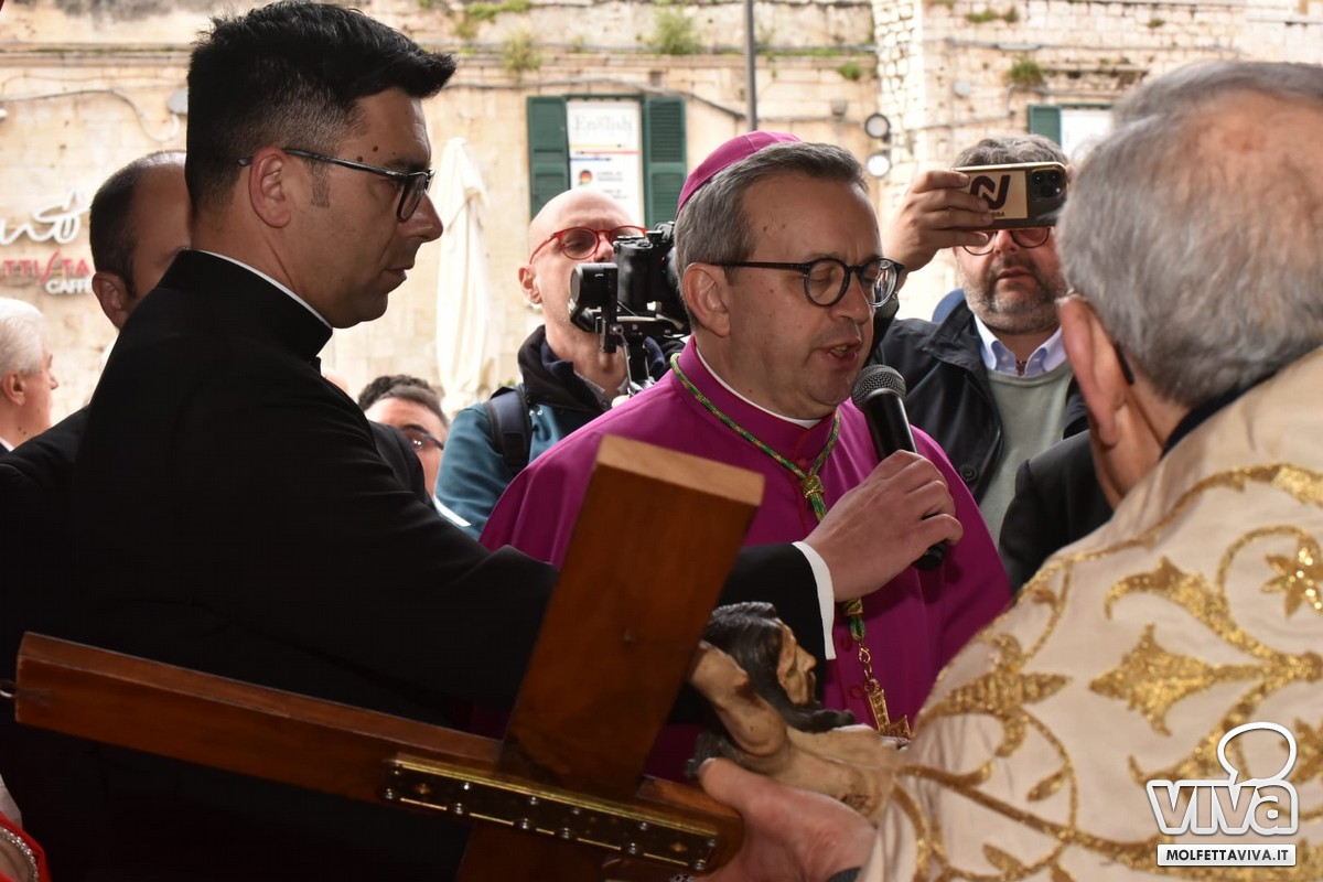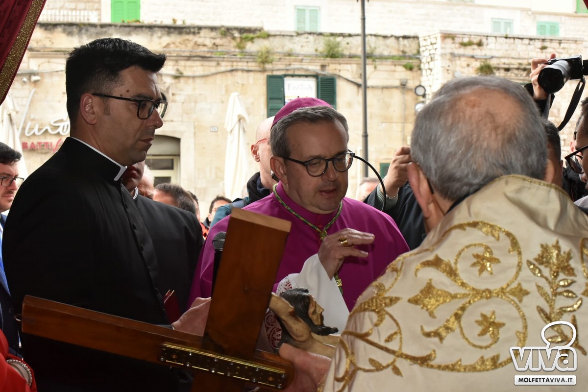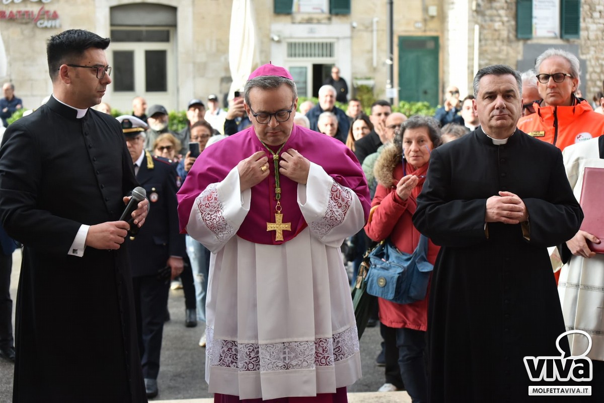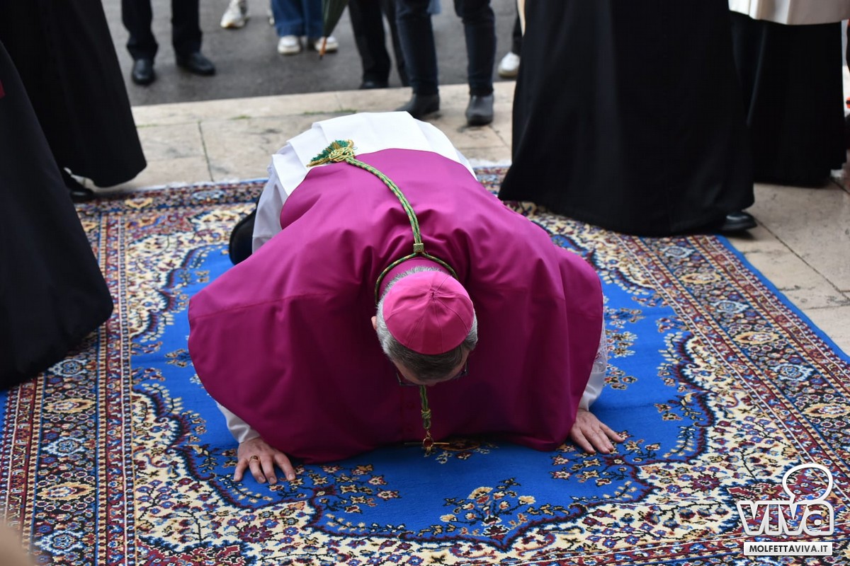 Si è aperta ieri, mercoledì 22 aprile 2026, una nuova pagina per la diocesi di Molfetta-Ruvo-Giovinazzo-Terlizzi. Con una celebrazione solenne e vissuta in un clima di profonda partecipazione, S.E. Mons. Domenico Basile ha iniziato ufficialmente il suo ministero episcopale. È stato un momento di autentica accoglienza, in cui il cammino quotidiano delle città e la preghiera solenne della comunità si sono stretti attorno alla figura del nuovo Vescovo.